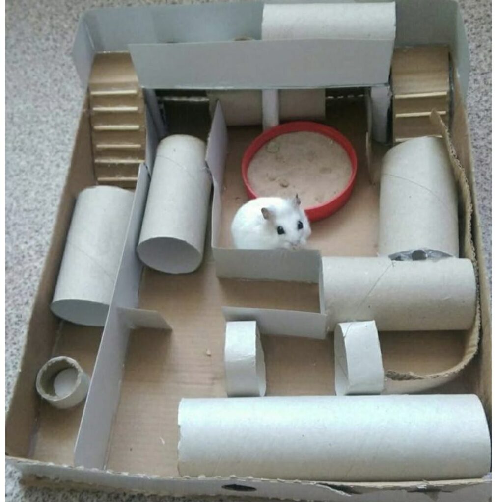 • Szerokość między prętami  w przypadku klatki nie powinna przekraczać 1 cm (dla chomika Roborowskiego 0,6 cm), powinna znajdować się w spokojnym miejscu, z dala od słońca, hałasów, intensywnych zapachów. Najlepszą opcją jest umieszczenie klatki na wysokości – dzięki czemu chomik  będzie mógł spokojnie spać w ciągu dnia, a nam ułatwi obserwację go wieczorem. Zwierzę powinno czuć się komfortowo w swoim mieszkaniu.