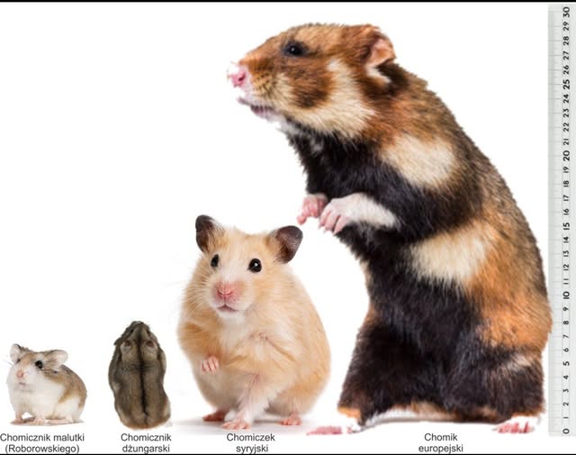 Na koniec porównanie różnych gatunków chomików domowych z chomikiem europejskim, który obecnie jest objęty ścisłą ochroną gatunkową.