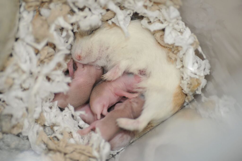 Długość cyklu płciowego u chomika to  4-5 dni, ruja trwa 8-26 godzin, a ciąża 15-22 dni. W miocie rodzi się od 4 do 12 młodych, ważących 1,5-3 g. Optymalny wiek odsadzenia to ok 3 tygodnie. Samce osiągają dojrzałość płciową w wieku 8 tygodni, a samice w wieku 6 tygodni. To moment, w którym hodowca powinien oddzielić chomiki według płci.
