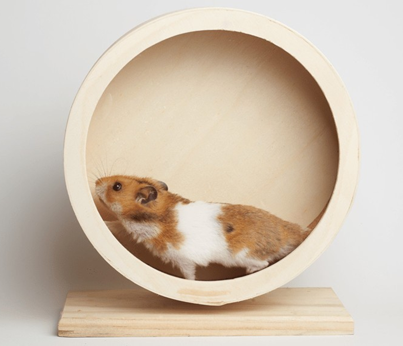 • kule do biegania – dla opiekunów jest to zabawny widok, dla chomika ogromny stres, każde uderzenie o ściany boli, nie wspominając już o bólu kręgosłupa z powodu biegania w małej kuli