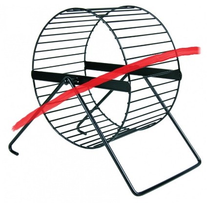 • Kołowrotek nie powinien posiadać szczebelków i tak zwanego efektu nożyc (gdy budowa kołowrotka umożliwia zaklinowanie części ciała (łapki, głowy) w przestrzeni między wspornikiem koła a jego podporą/nóżkami).  Najcichsze są kołowrotki drewniane.